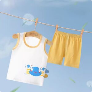 Let your little one step into comfort and fun with this adorable kids’ T-shirt and shorts set!